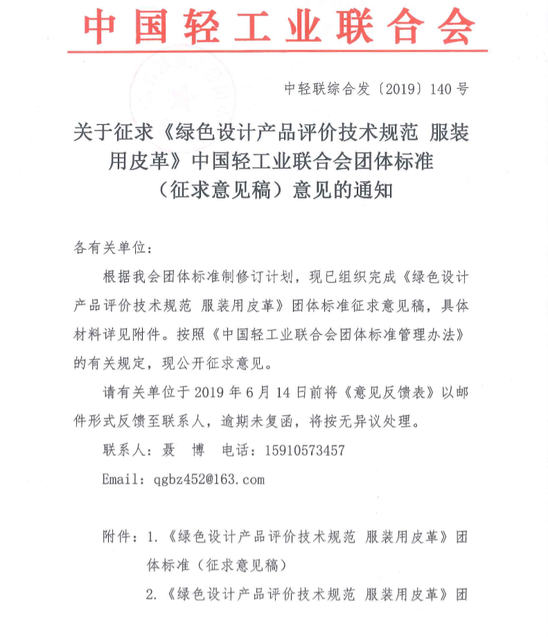 《绿色设计产品评价技术规范 服装用皮革》团体标准(征求意见稿)