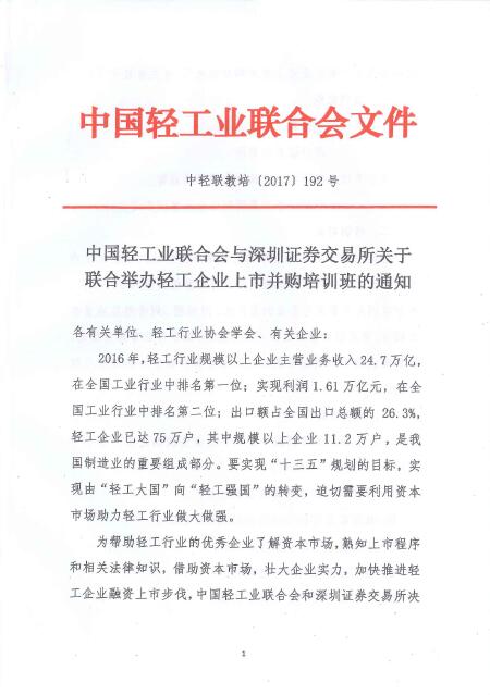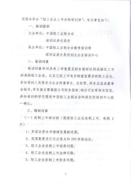 优米app下载直播与深圳证券交易所关于联合举办轻工企业上市并购培训班的通知
