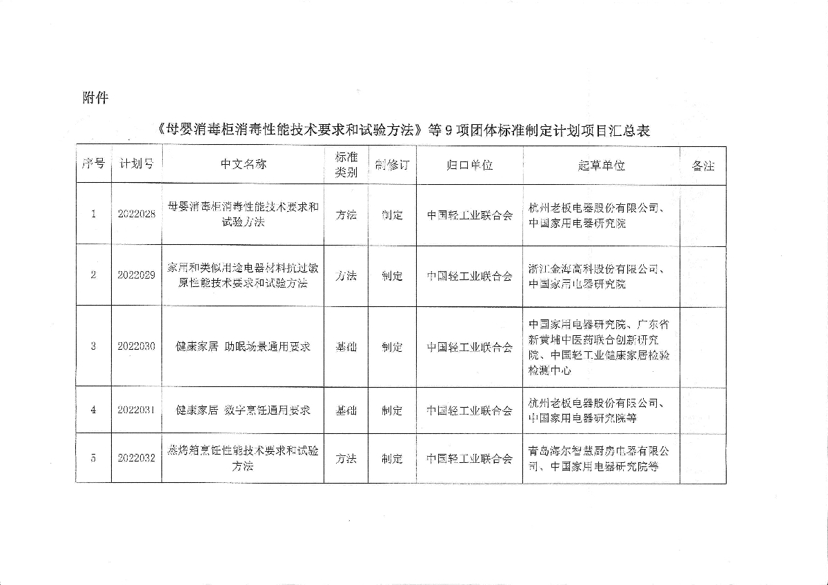 关于下达《母婴消毒柜消毒性能技术要求和试验方法》等9项优米app下载直播团体标准计划的通知