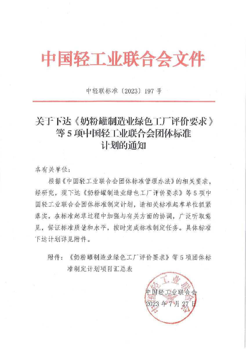 关于下达《奶粉罐制造业绿色工厂评价要求》等5项优米app下载直播团体标准计划的通知