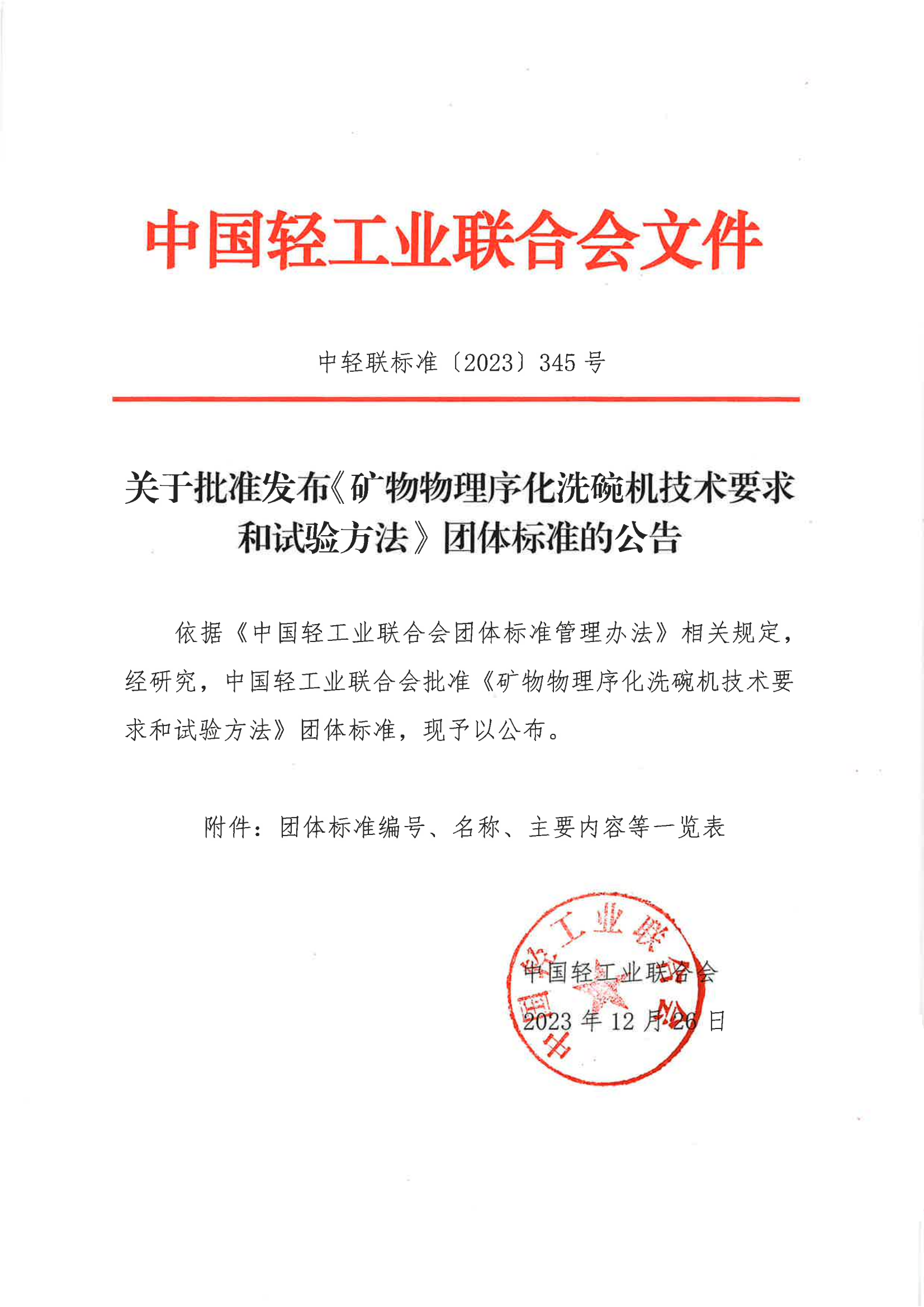关于批准发布《矿物物理序化洗碗机技术要求和试验方法》团体标准的公告