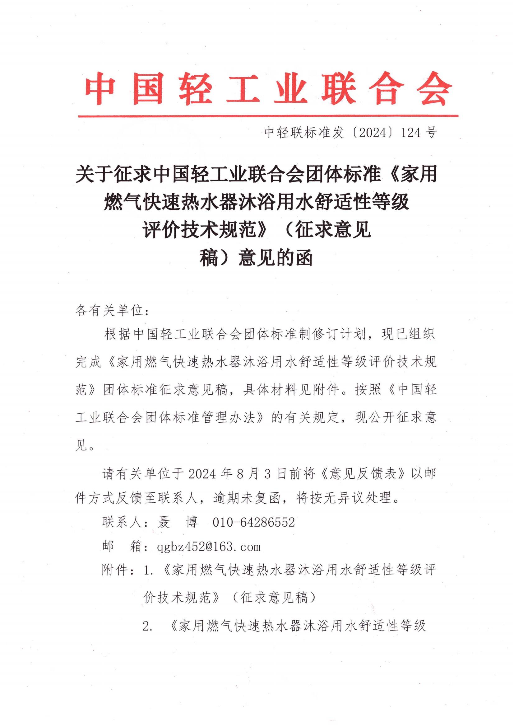 关于征求优米app下载直播团体标准《家用燃气快速热水器沐浴用水舒适性等级评价技术规范》(征求意见稿)意见的函