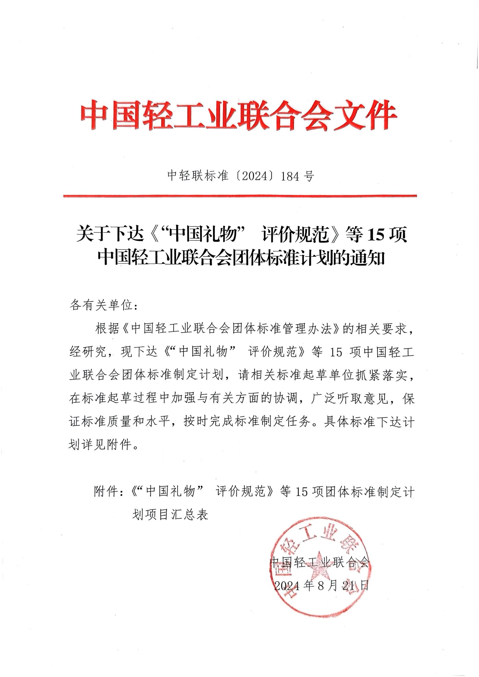关于下达《“中国礼物”评价规范》等15项优米app下载直播团体标准计划的通知
