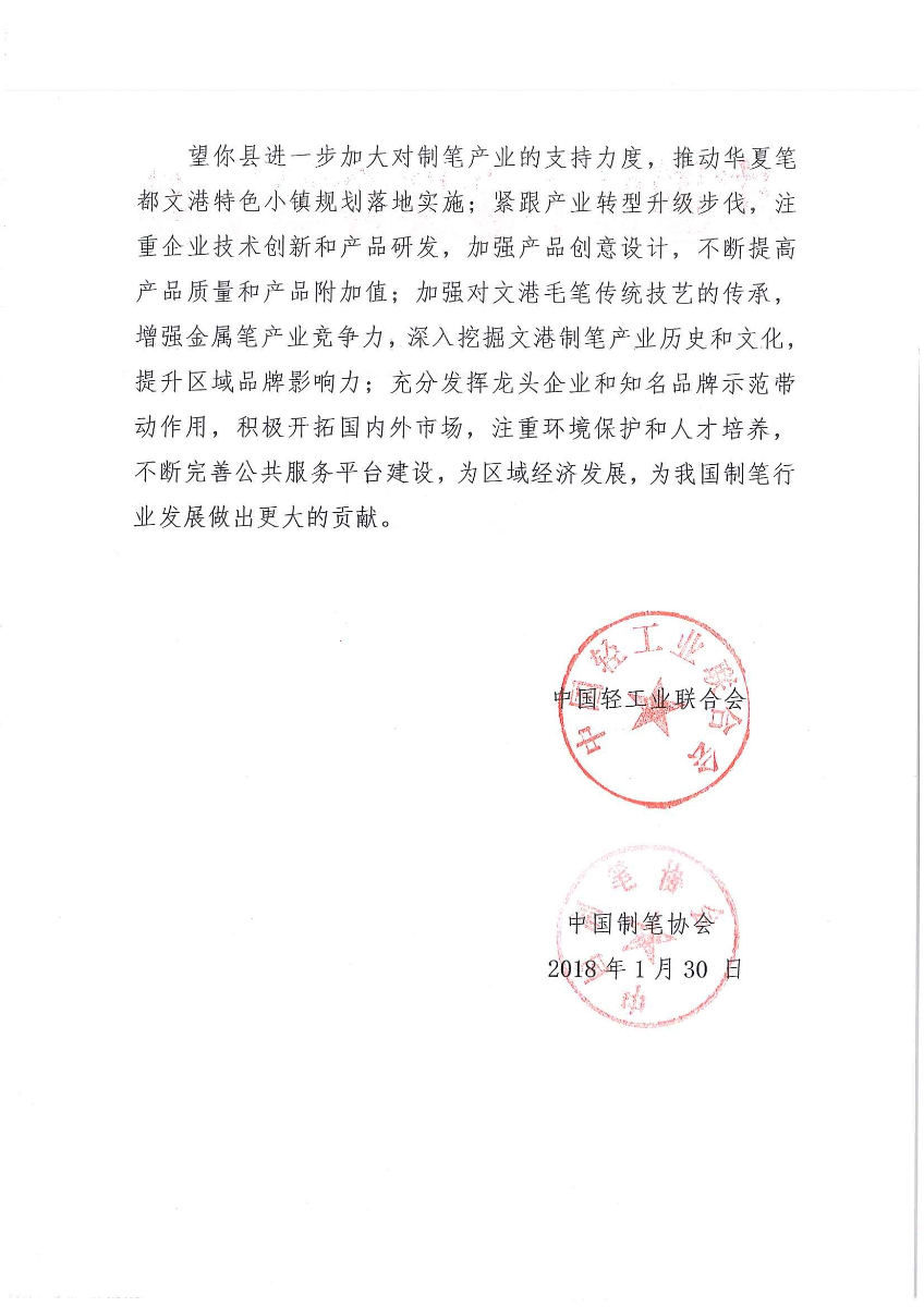 关于继续授予江西省进贤县文港镇“华夏笔都”称号的通知