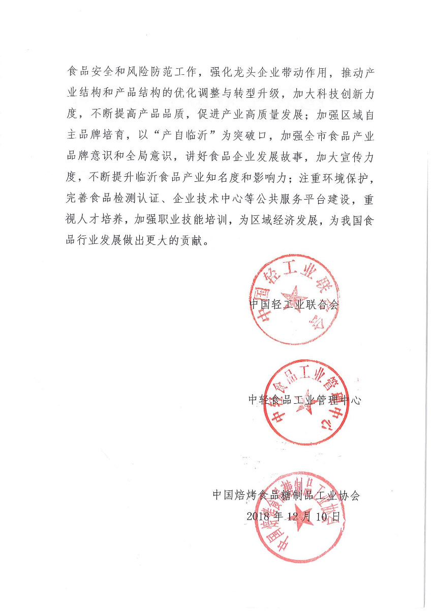 关于授予山东省临沂市“中国食品之都·临沂”称号的通知