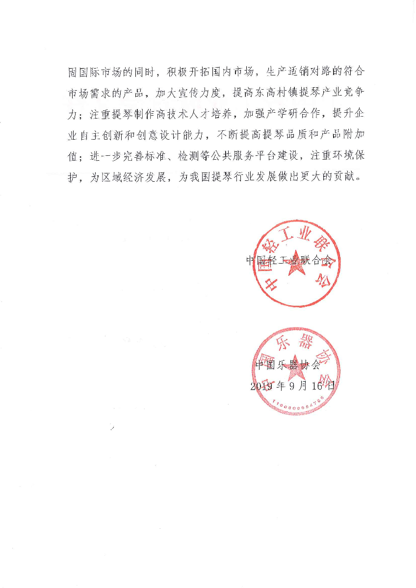 关于继续授予北京市平谷区东高村镇“中国提琴产业基地·东高村镇”称号的通知