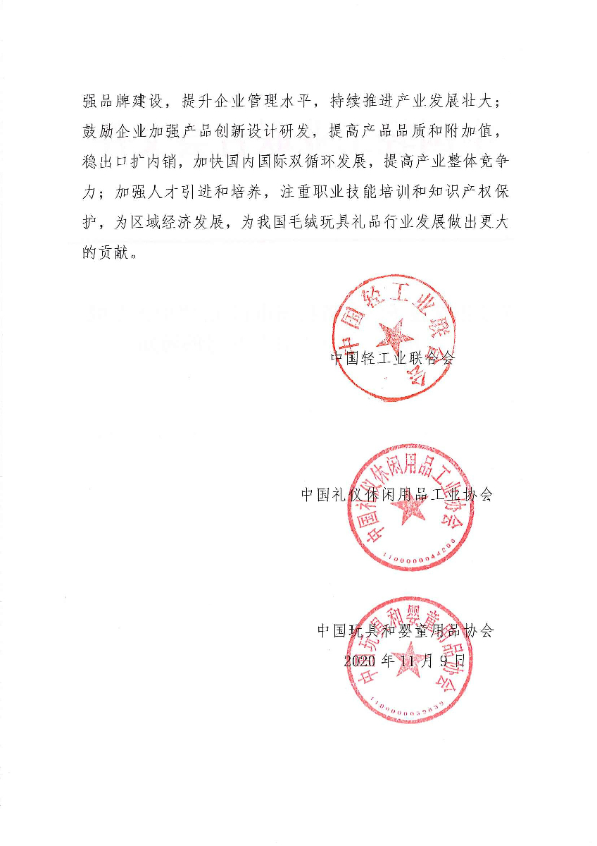 关于继续授予江苏省扬州市邗江区“中国毛绒玩具礼品之都·邗江”称号的通知