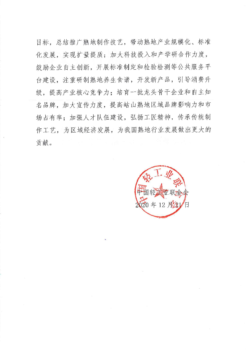 关于授予福建省永春县岵山镇“中国特色食品(九制熟地)之乡·岵山”称号的通知