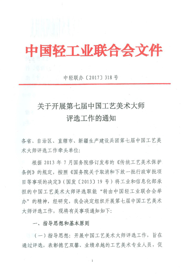 附件一:第七届中国工艺美术大师评选工作管理办法