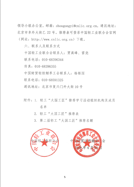 关于在轻工行业开展第二届“大国工匠”推荐学习活动的通知
