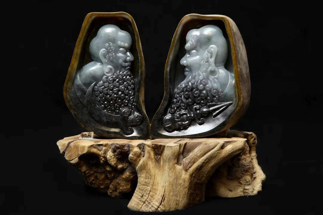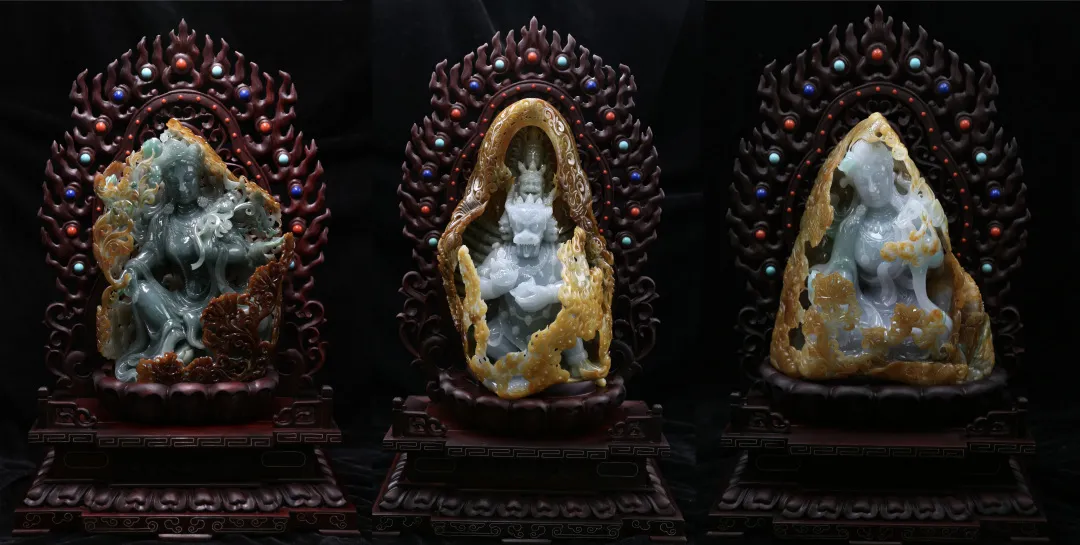 崔奇铭大师继承传统又推陈出新,在北派宫廷玉器艺术特色的基础上融入自己的创新理念,形成了独特的玉雕风格。他的翡翠作品构思新颖,惟妙惟肖,以俏色巧雕、皮色巧雕居多,玉雕人物神形兼备,山子摆件古朴典雅,玉牌挂件精致玲珑,翡翠“红皮白肉”“黄皮绿肉”之美呼之欲出。其佛像作品最具特色,既遵循历代佛教造像艺术的法度,又揉进了现代人物造型的处理手法,融注佛理禅心的内涵,嵌入花鸟山水的美景,整体作品庄严肃穆而又灵动传神。