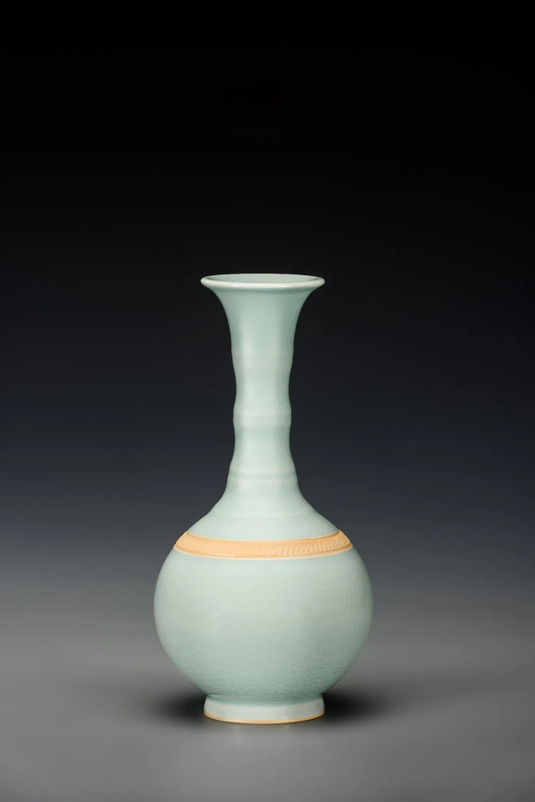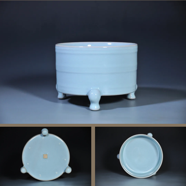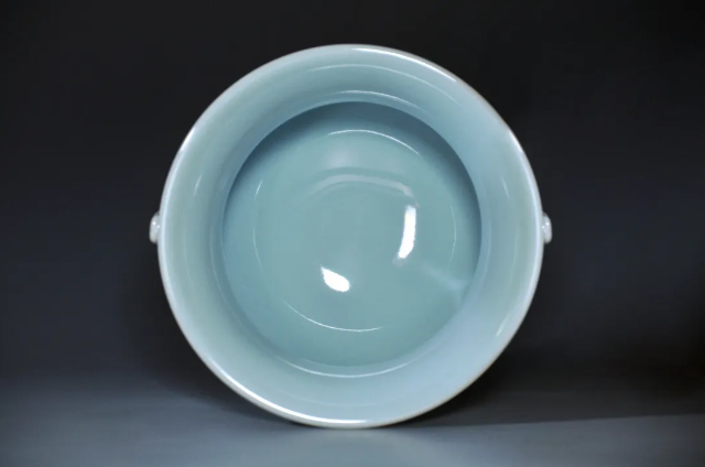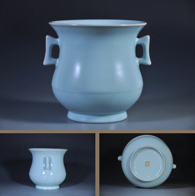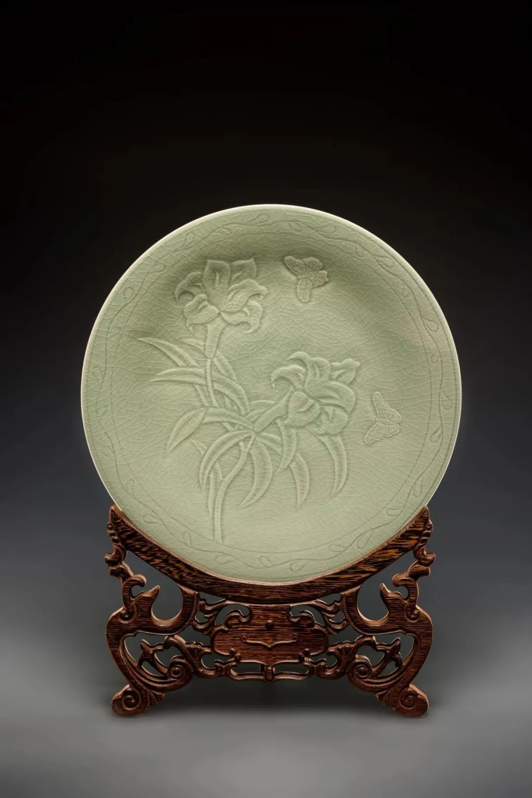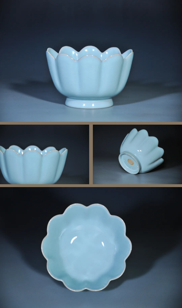 孟大师作品继承了北宋汝瓷艺术风格,将天青、天蓝、豆绿、月白等釉色的绝美风姿展现得淋漓尽致,同时又融入了元明造器风格,创作的汝瓷作品器型稳健大气、古朴秀美,色泽青翠华滋、澄澈清透,釉汁肥润莹亮、有如堆脂,视如碧玉,扣声如馨,质感甚佳。孟大师作品除仿古风格之外,还巧妙地将汝瓷与现代人文环境、社会生活相融合,创作出富含现代元素的创新之作。《富贵》《国色天香》等作品别出心裁,利用捏塑、堆雕等技法,将立体花卉植物融进传统汝瓷创作,使作品更具生机;作品《童趣》突破传统汝瓷器型,采用肤色泥新技术,塑造了更加逼真的孩童形象,使传统汝瓷绽放出新的光彩。