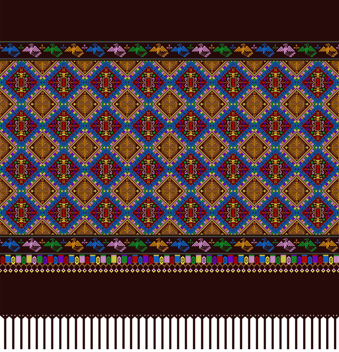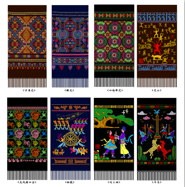 壮锦,与云锦、蜀锦、宋锦并称中国四大名锦,据传起源于宋代,是中华民族文化瑰宝。作品利用棉线、丝线纯手工编织而成,制作精美,图案生动,结构严谨,色彩斑斓,充满热烈、开朗的壮民族格调。