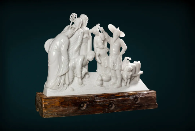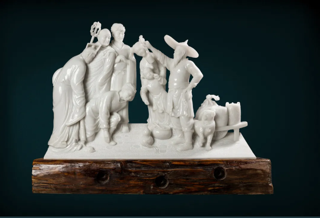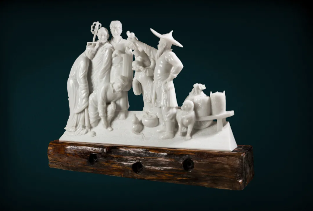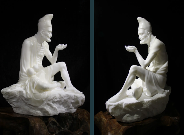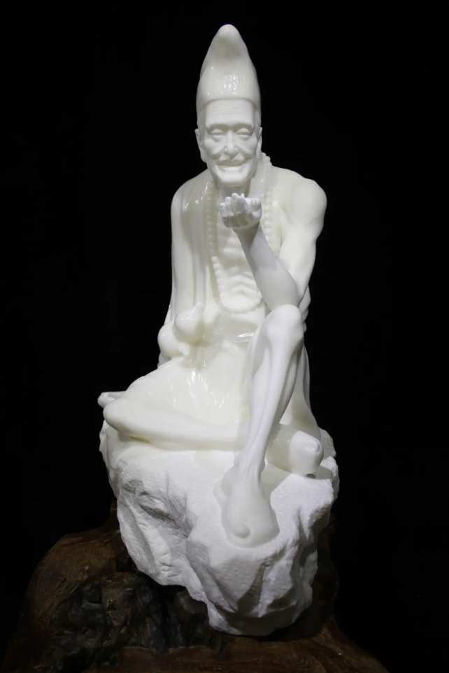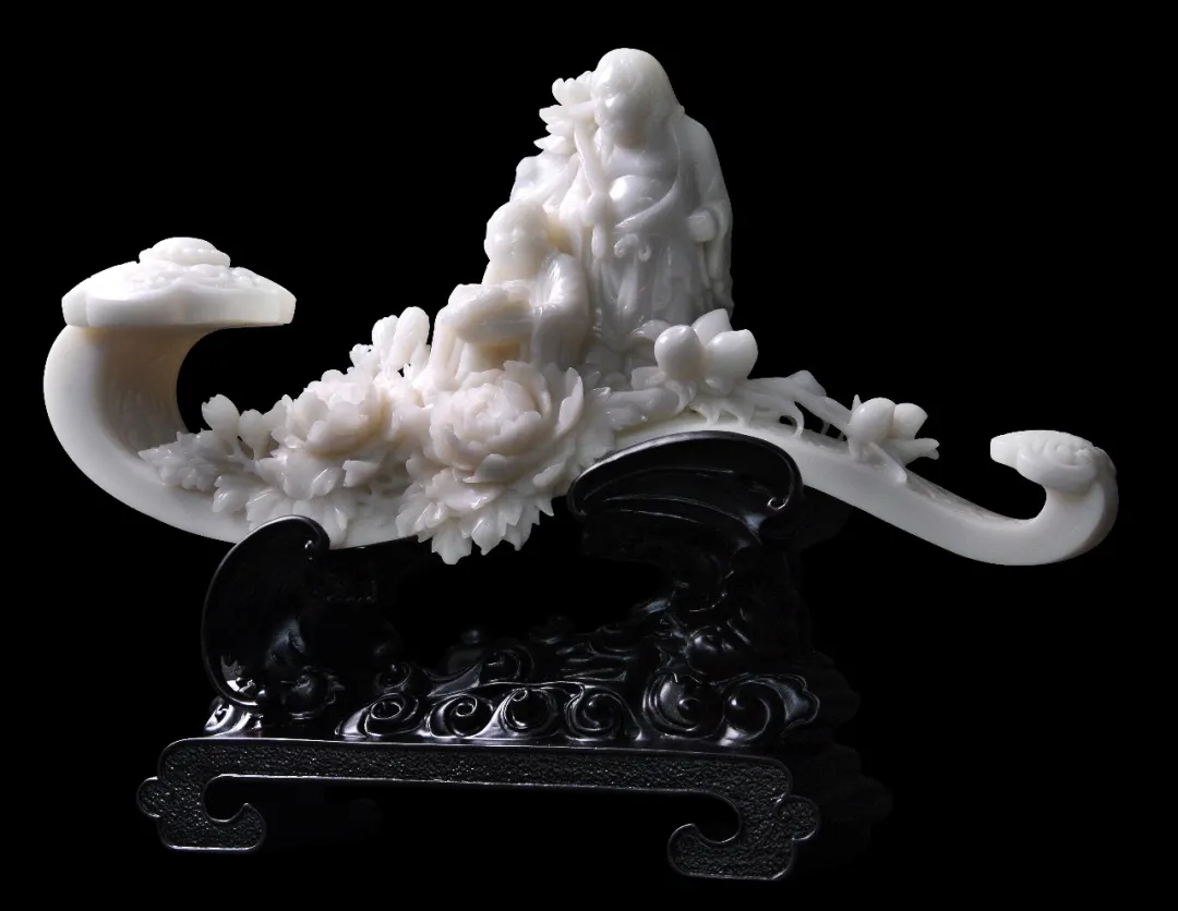 “酒肉穿肠过,佛祖心中留”,作品色泽莹润,洁净透亮,运用圆雕、透雕、镂空雕等多种雕刻技法和不同的表面处理方式,赋予作品丰富的层次感,塑造出济公洒脱不羁,充满仙气和正气的佛家形象。