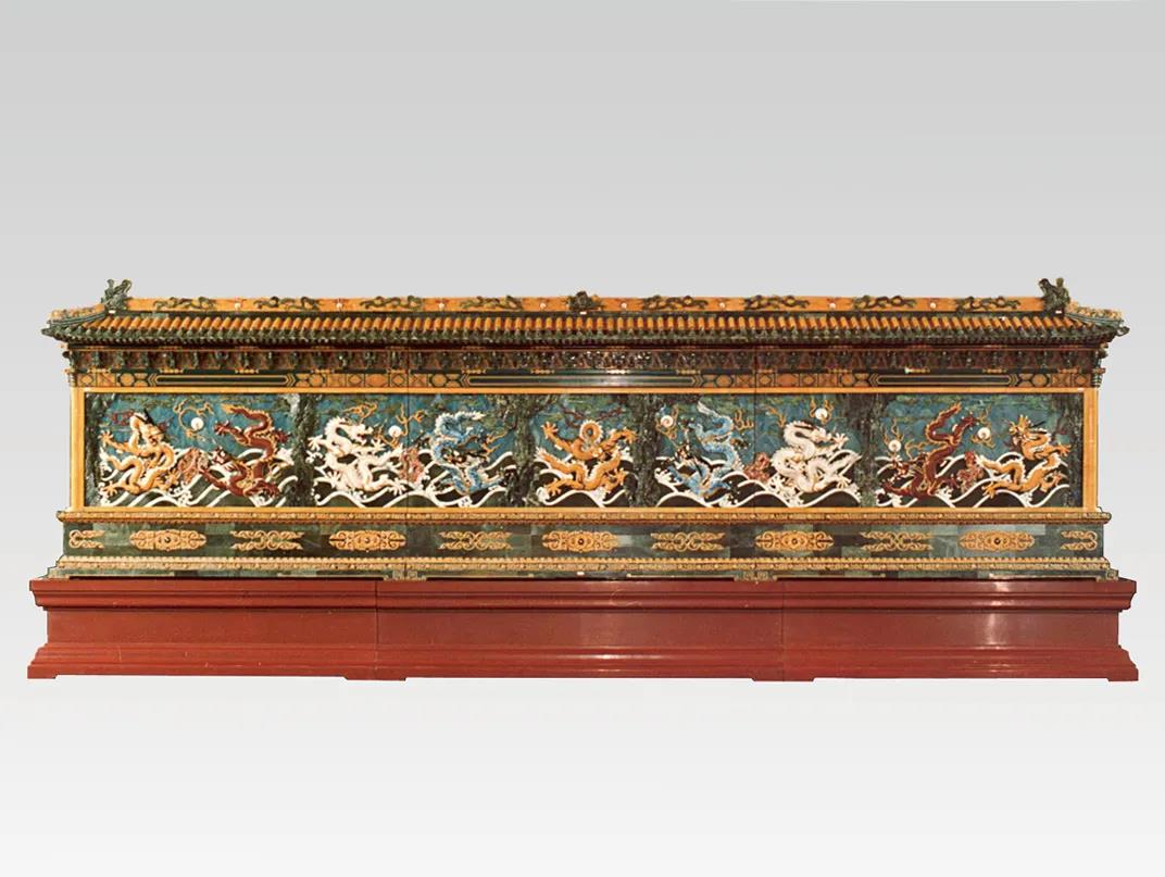 精工雕填堆古彩绘贴金《十二月令图》屏风