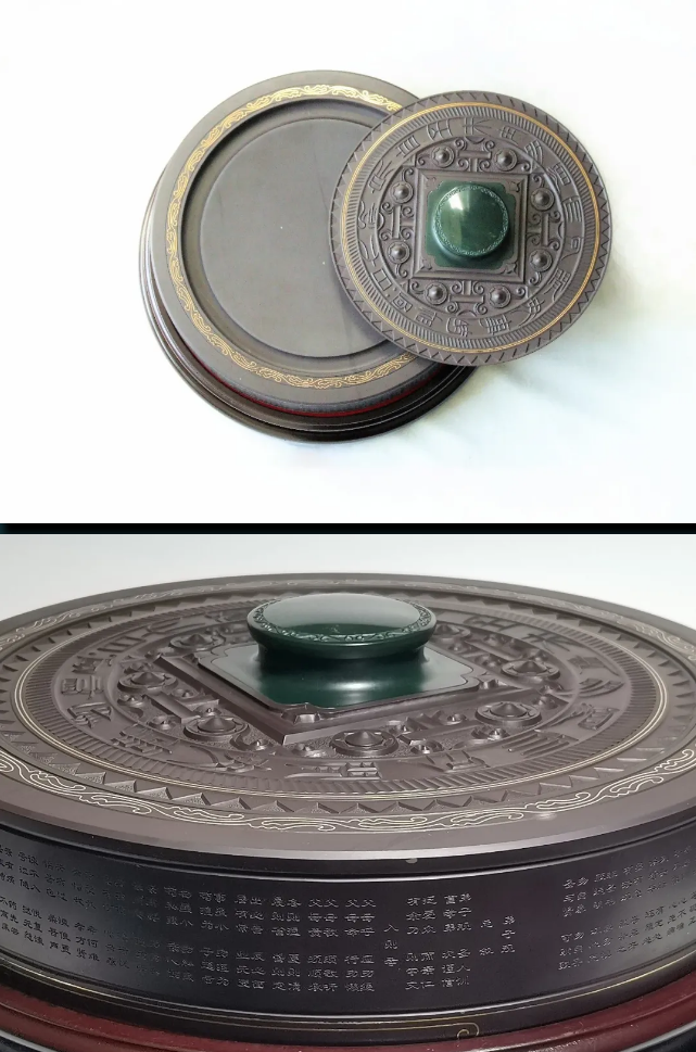作品以宁夏优质贺兰砚石料和阿拉善碧玉为原料,结合了玉雕、嵌金技艺,巧心设计,精雕细刻而成。以弘扬中华传统文化美德为主题核心,砚壁周围精雕《弟子规》全篇1080字,雕工精细入微,字体工整,富有美感。砚盖为中国传统铜镜造型,上刻篆文十八字箴言,与砚壁《弟子规》呼应,传达出作者对中华民族恭敬、谦虚、勤检、诚信、仁慈、博爱等美好品质的推崇。