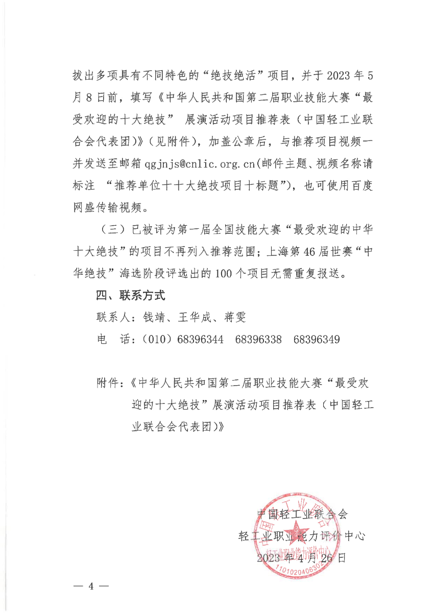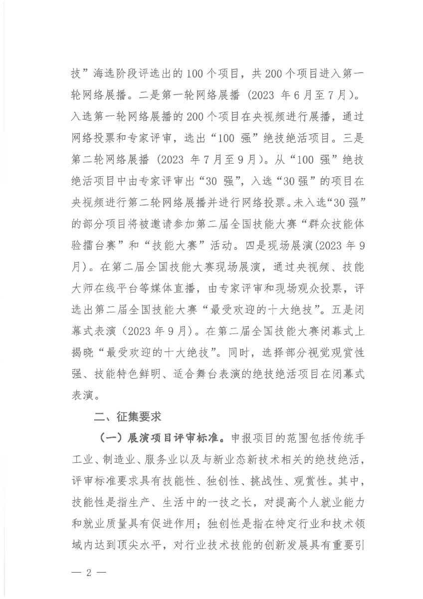 关于转发《关于征集中华人民共和国第二届职业技能大赛“最受欢迎的十大绝技”展演活动项目的通知》的通知