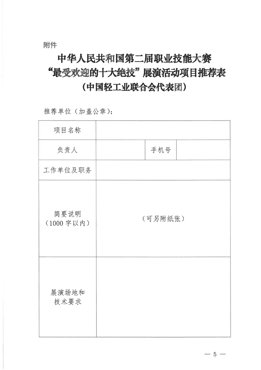 附件:中华人民共和国第二届职业技能大赛“最受欢迎的十大绝技”展演活动项目推荐表(优米app下载直播代表团).doc