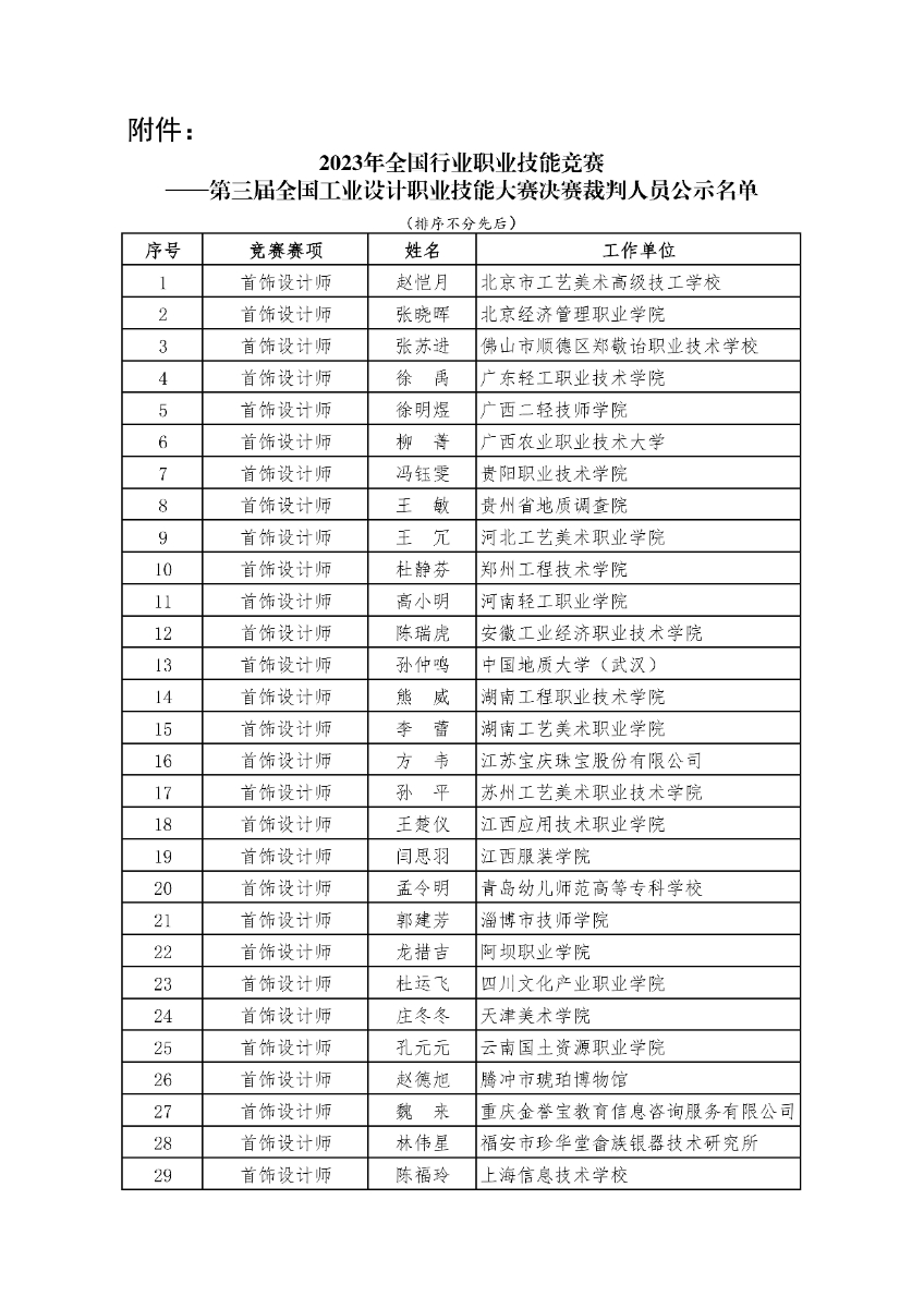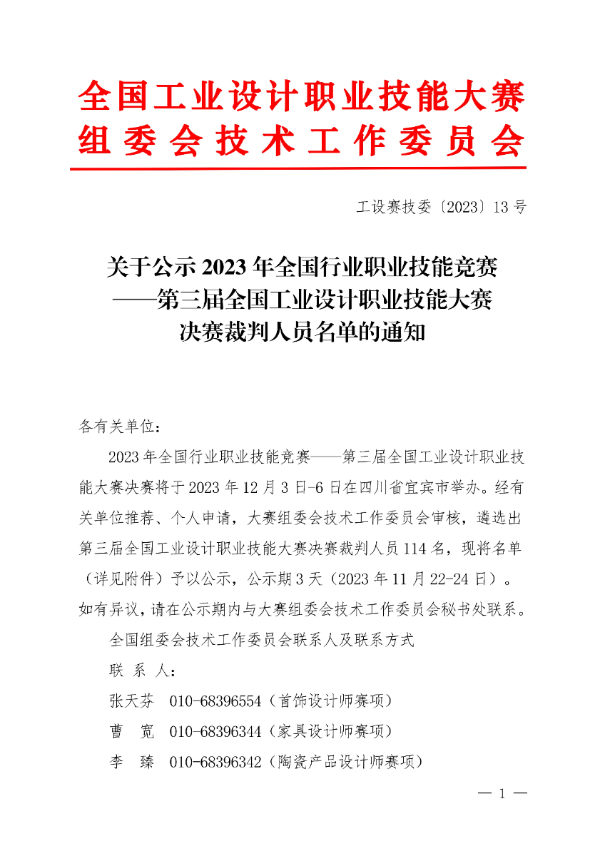 关于公示第三届全国工业设计职业技能大赛决赛裁判人员名单的通知