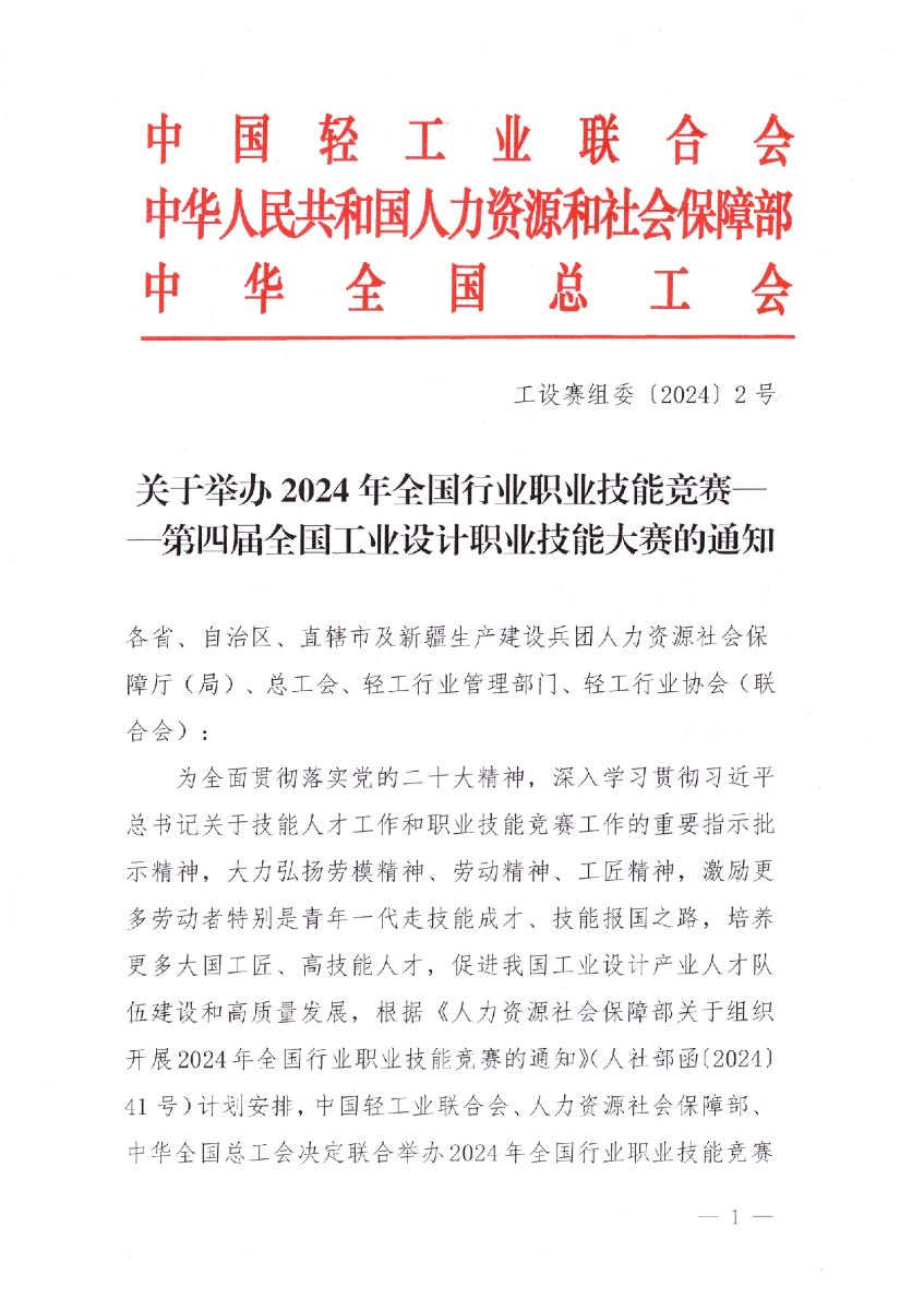 关于举办2024年第四届全国工业设计职业技能大赛的通知