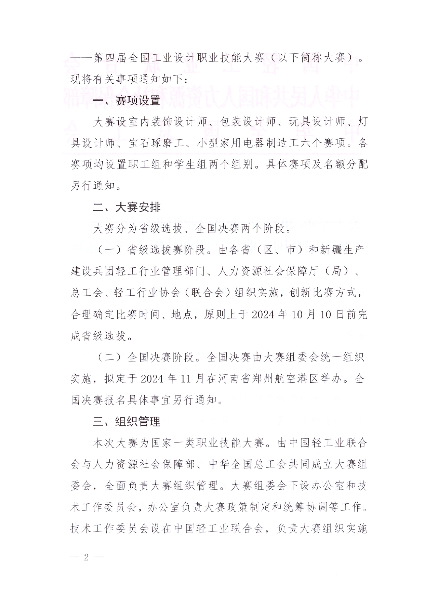 工设赛组委〔2024〕2号 关于举办2024年第四届全国工业设计职业技能大赛的通知.pdf