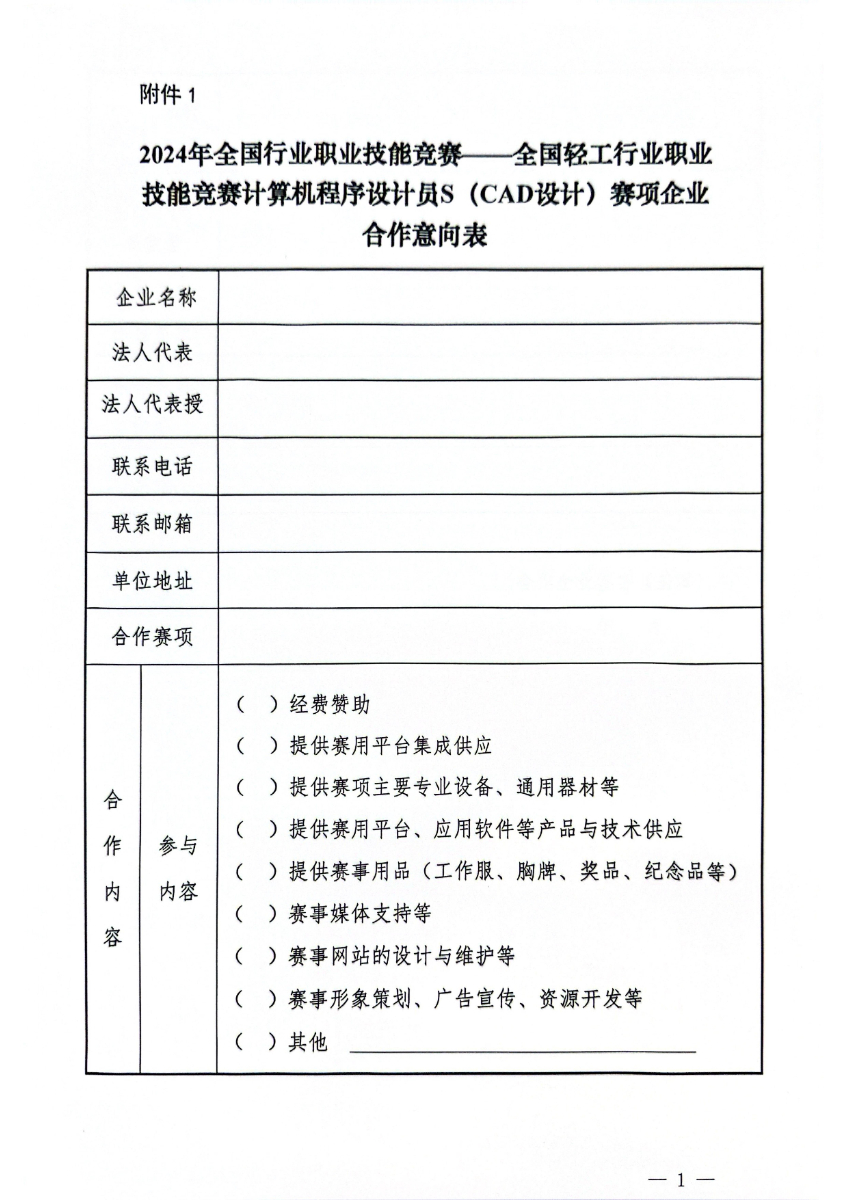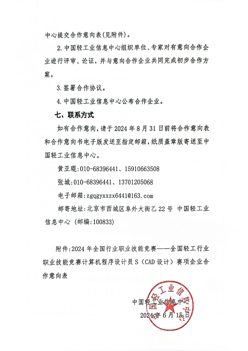 关于开展2024年全国轻工行业职业技能竞赛计算机程序设计员s(cad设计)赛项合作企业征集工作的通知.pdf