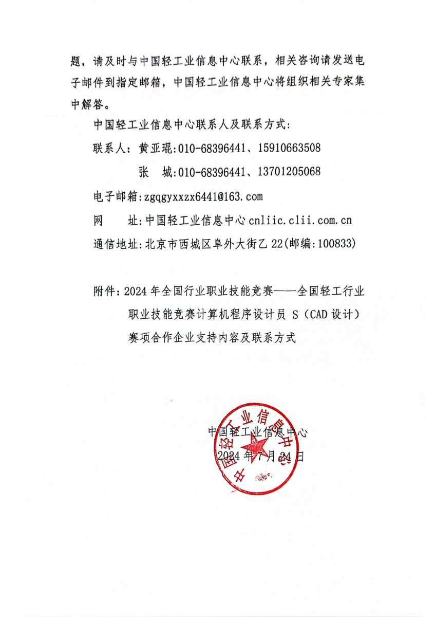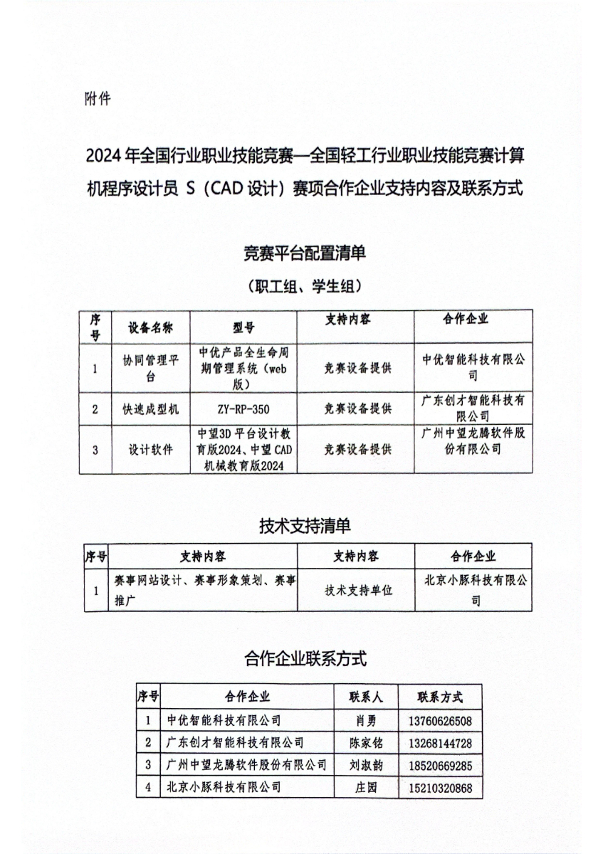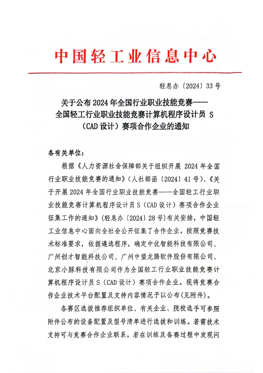 关于公布2024年全国轻工行业职业技能竞赛计算机程序设计员s(cad设计)赛项合作企业的通知.pdf