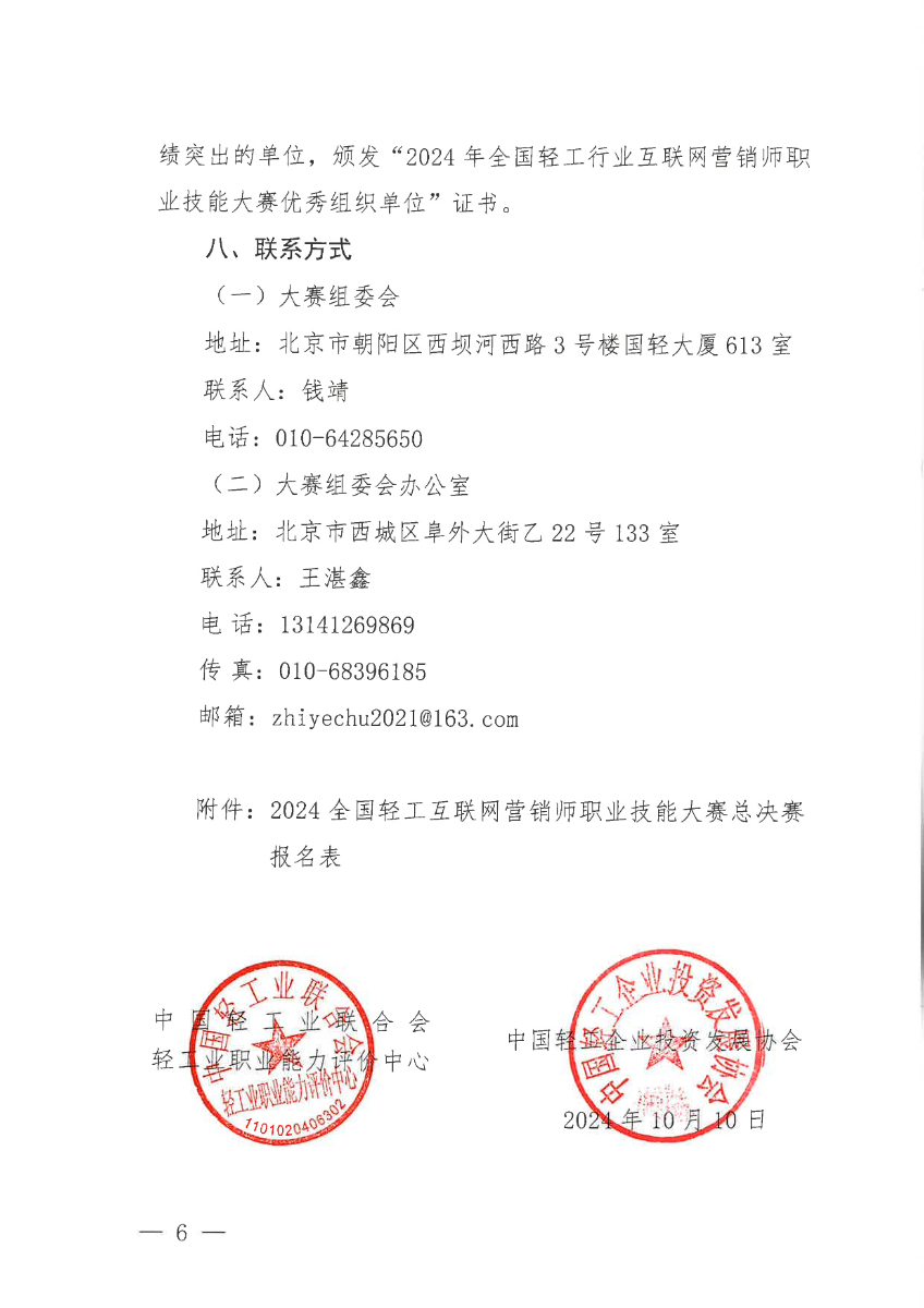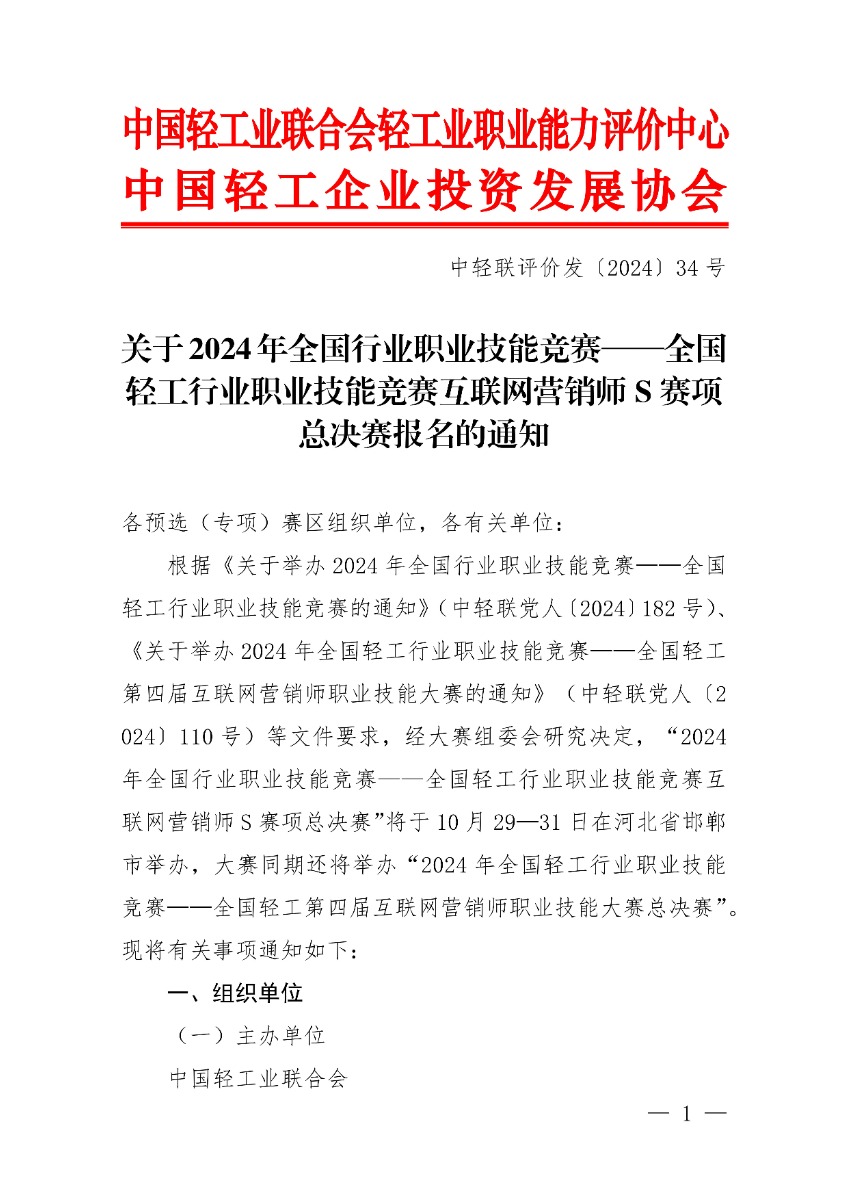 关于2024年全国轻工行业职业技能竞赛互联网营销师S赛项总决赛报名的通知.pdf
