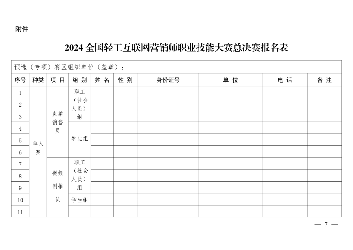 附件 2024全国轻工互联网营销师职业技能大赛总决赛报名表.docx