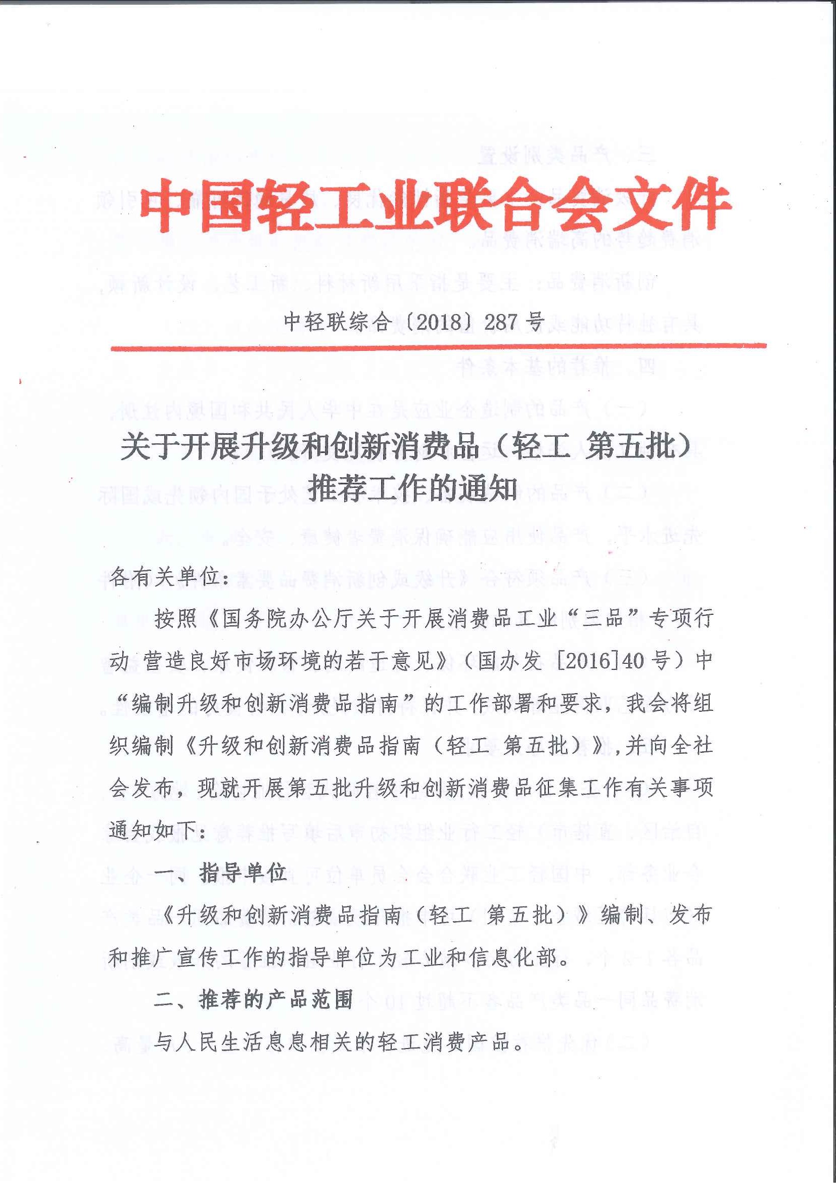 附件3、《升级和创新消费品(轻工 第五批)》推荐书(升级消费品).doc