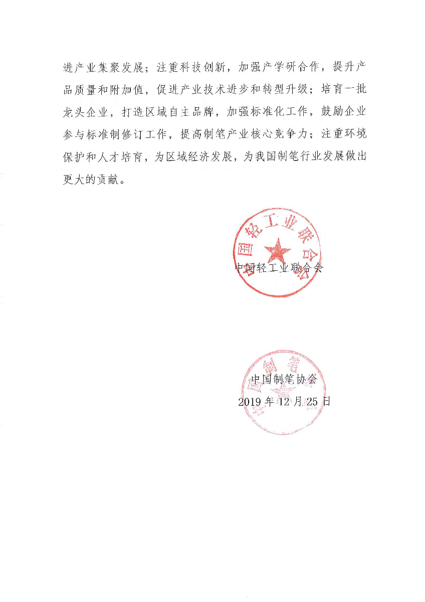 关于继续授予浙江省丽水市“中国制笔生产基地·丽水”称号的通知