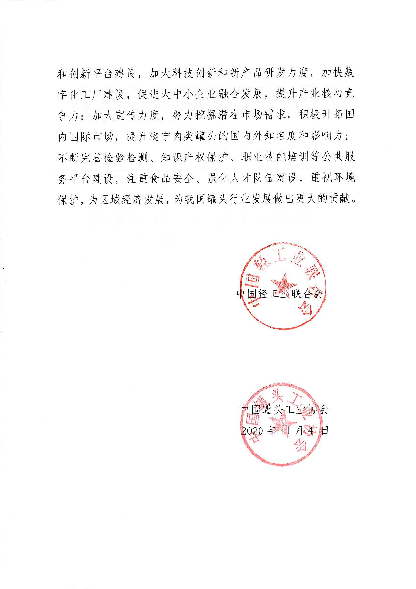 关于授予四川省遂宁市“中国肉类罐头之都·遂宁”称号的通知