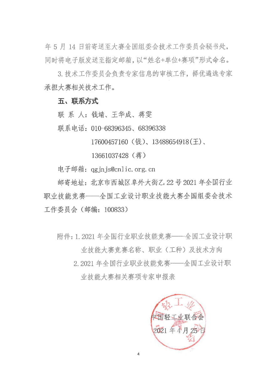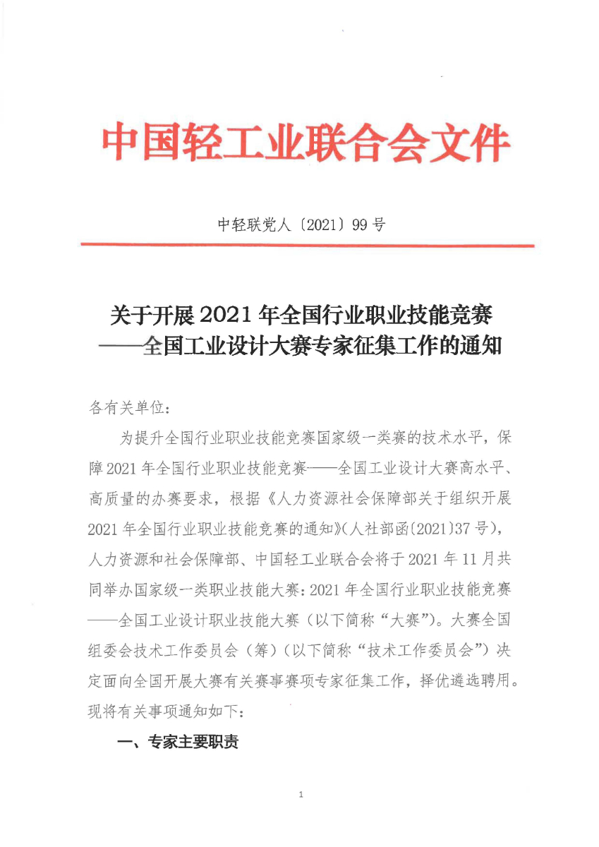 关于开展2021年全国行业职业技能竞赛——全国工业设计大赛专家征集工作的通知