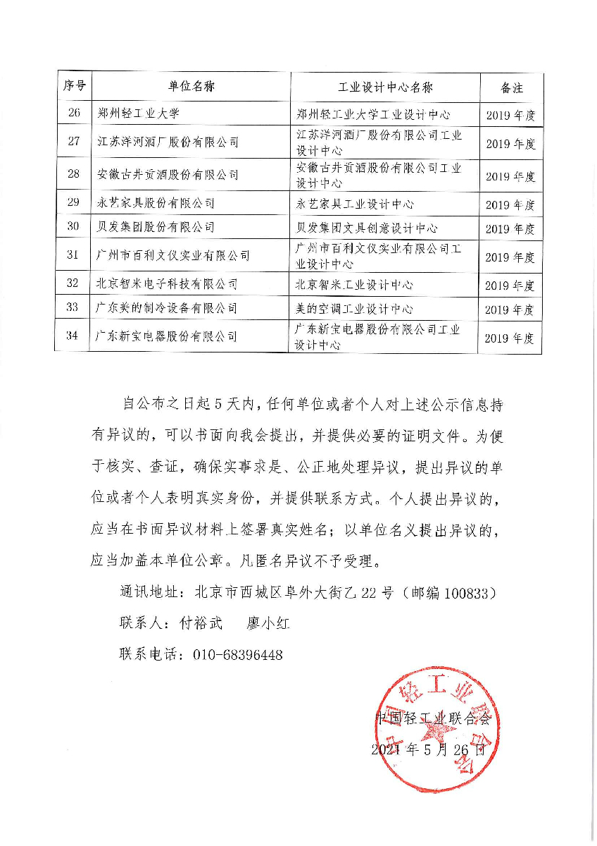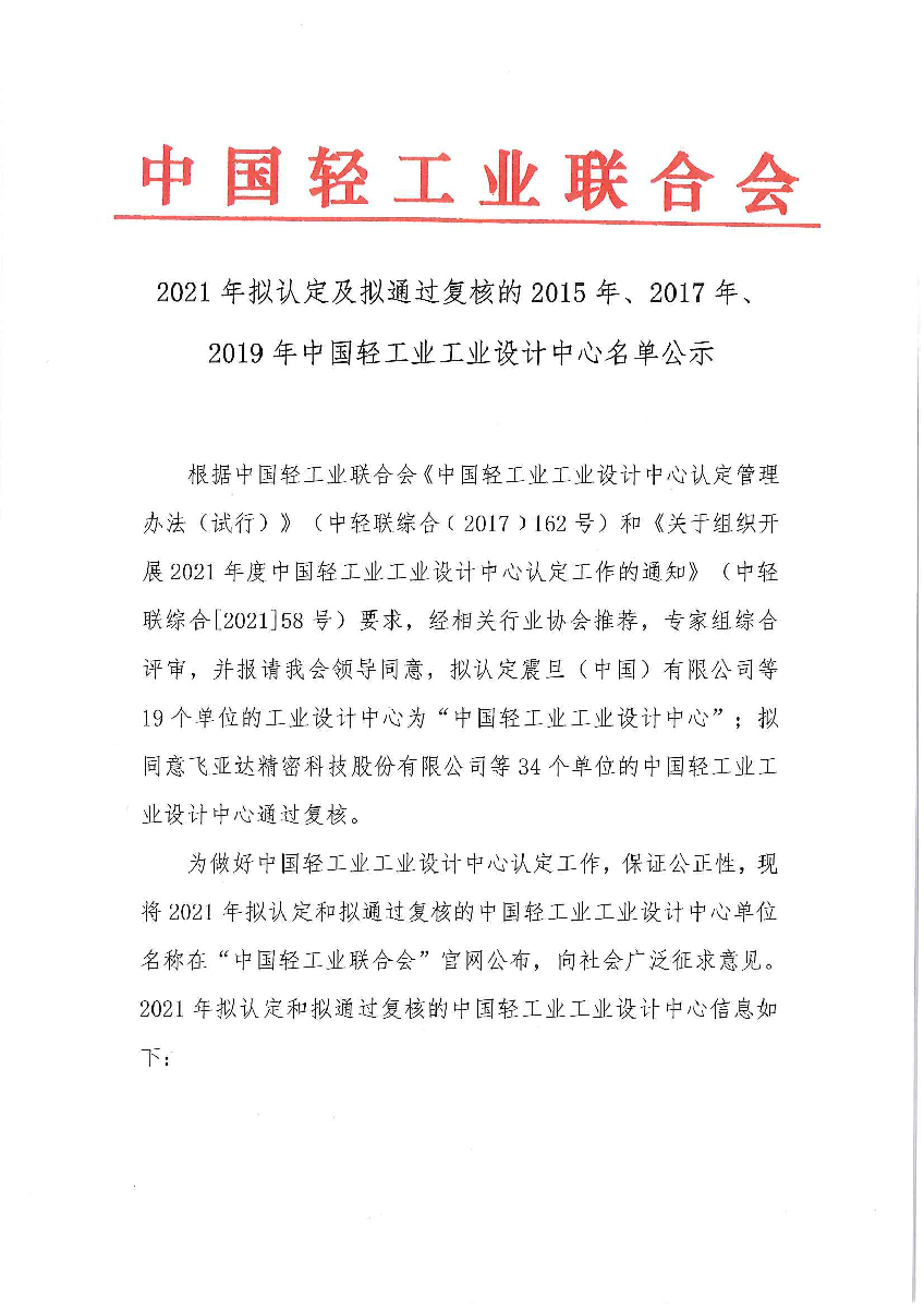 2021年拟认定及通过复核的2015年、2017年、2019年中国轻工业工业设计中心名单公示