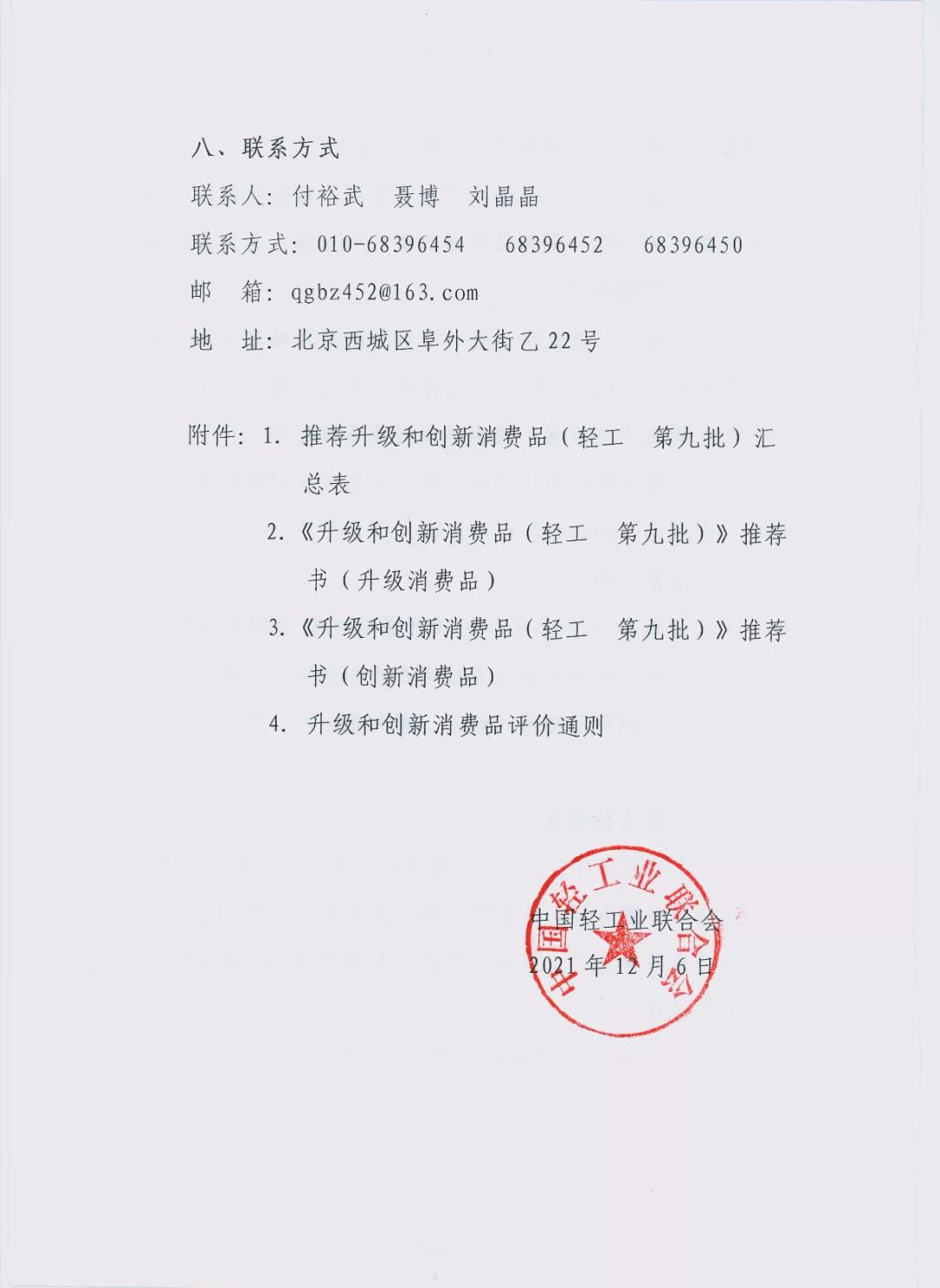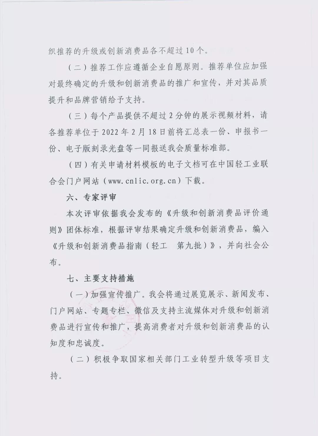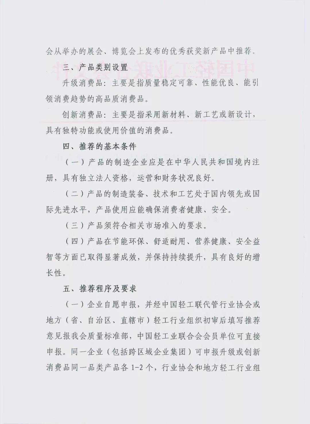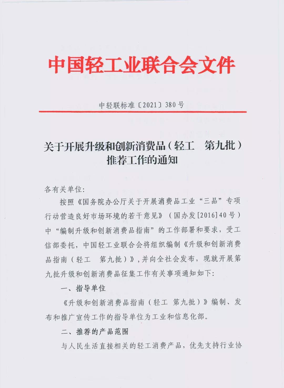 关于开展升级和创新消费品(轻工 第九批)推荐工作的通知