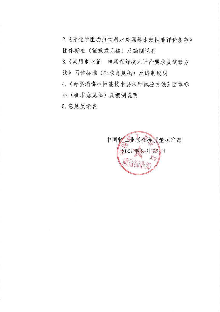 | 3、 | 无化学阻垢剂饮用水处理器水效性能评价规范(征求意见稿) |