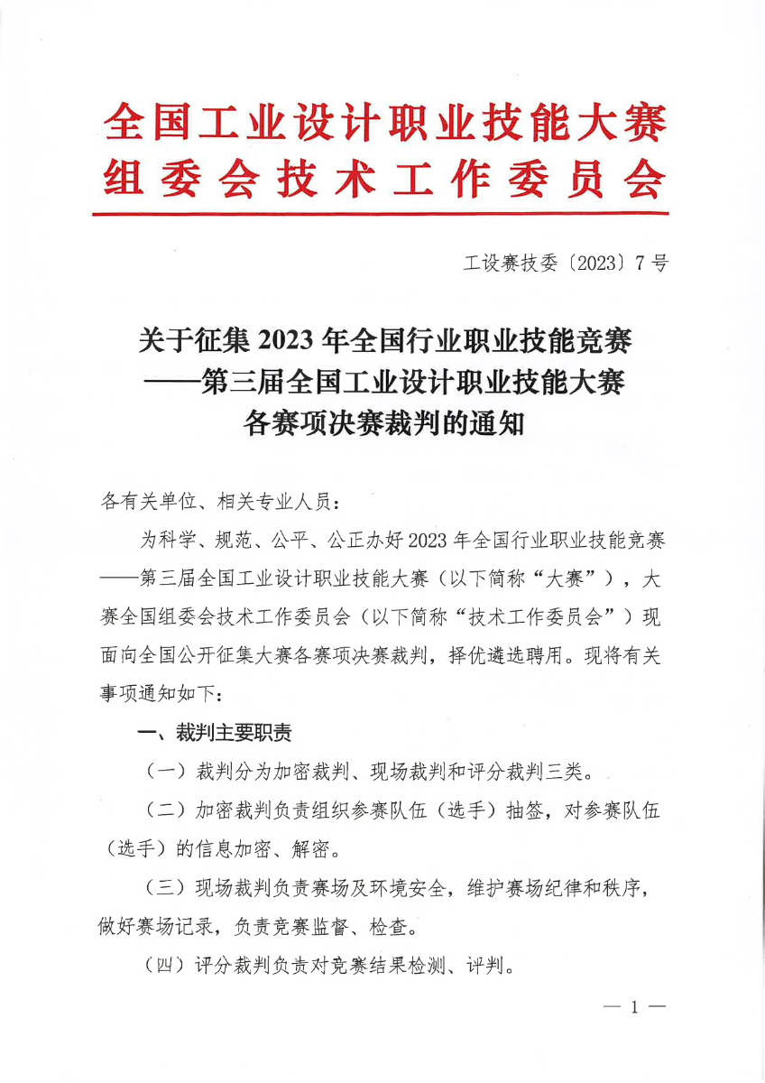 关于征集第三届全国工业设计职业技能大赛各赛项决赛裁判的通知.pdf