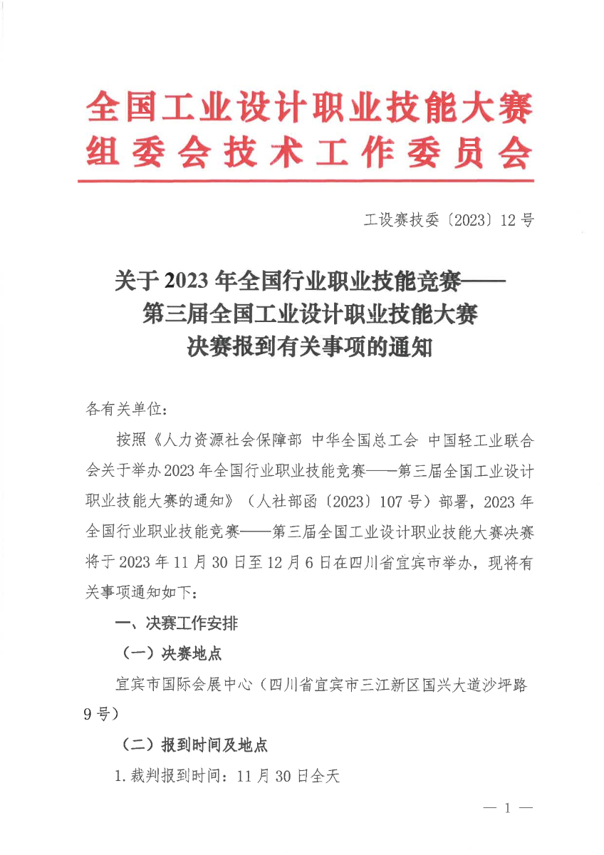 关于第三届全国工业设计职业技能大赛决赛报到有关事项的通知