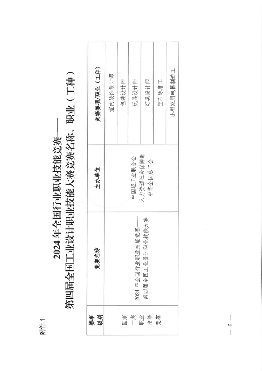附件1 2024年第四届全国工业设计职业技能大赛竞赛名称、职业(工种).docx
