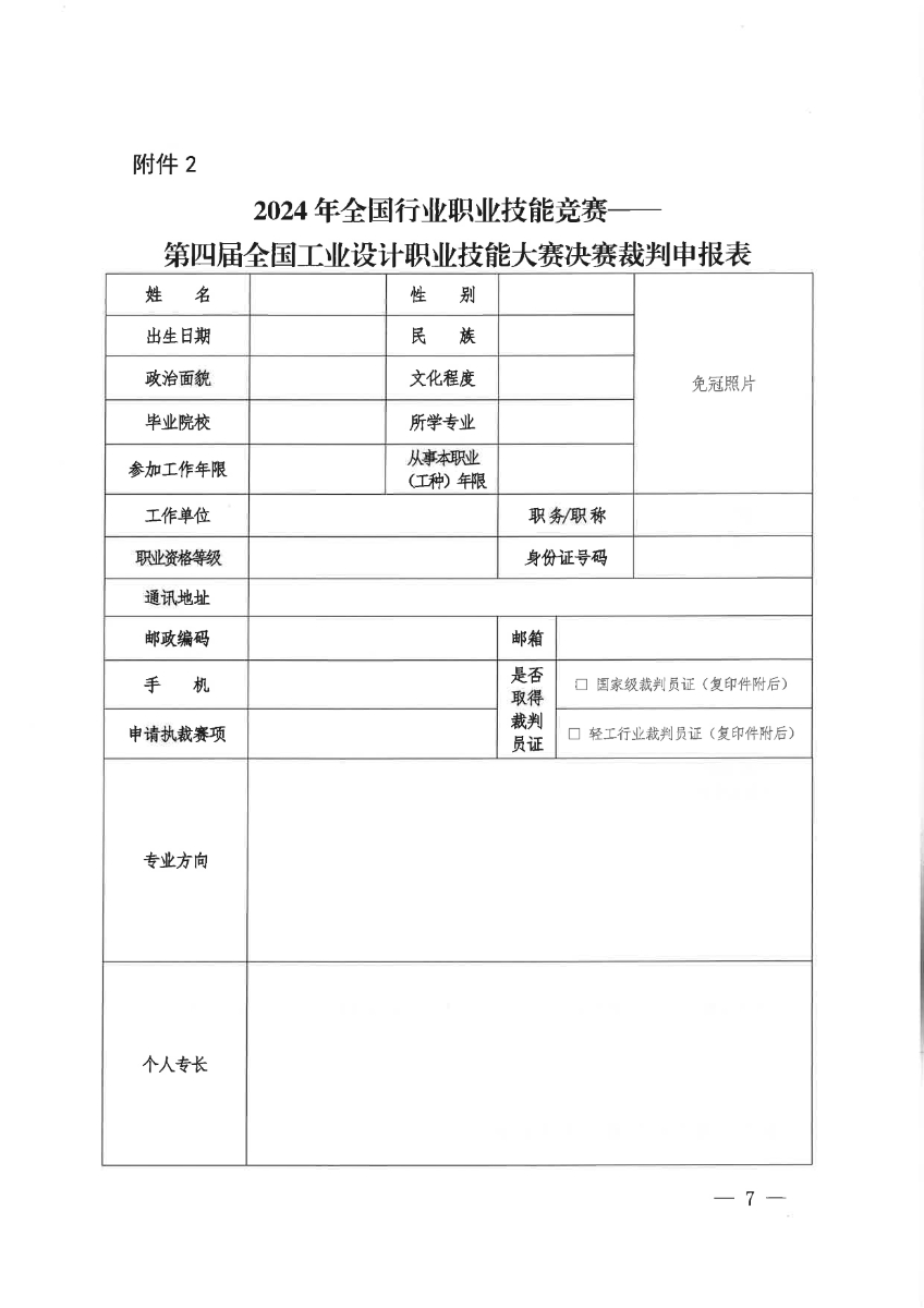 附件2 2024年第四届全国工业设计职业技能大赛决赛裁判申报表.docx