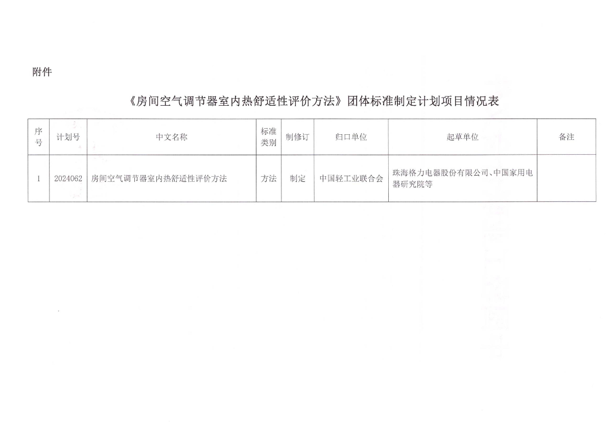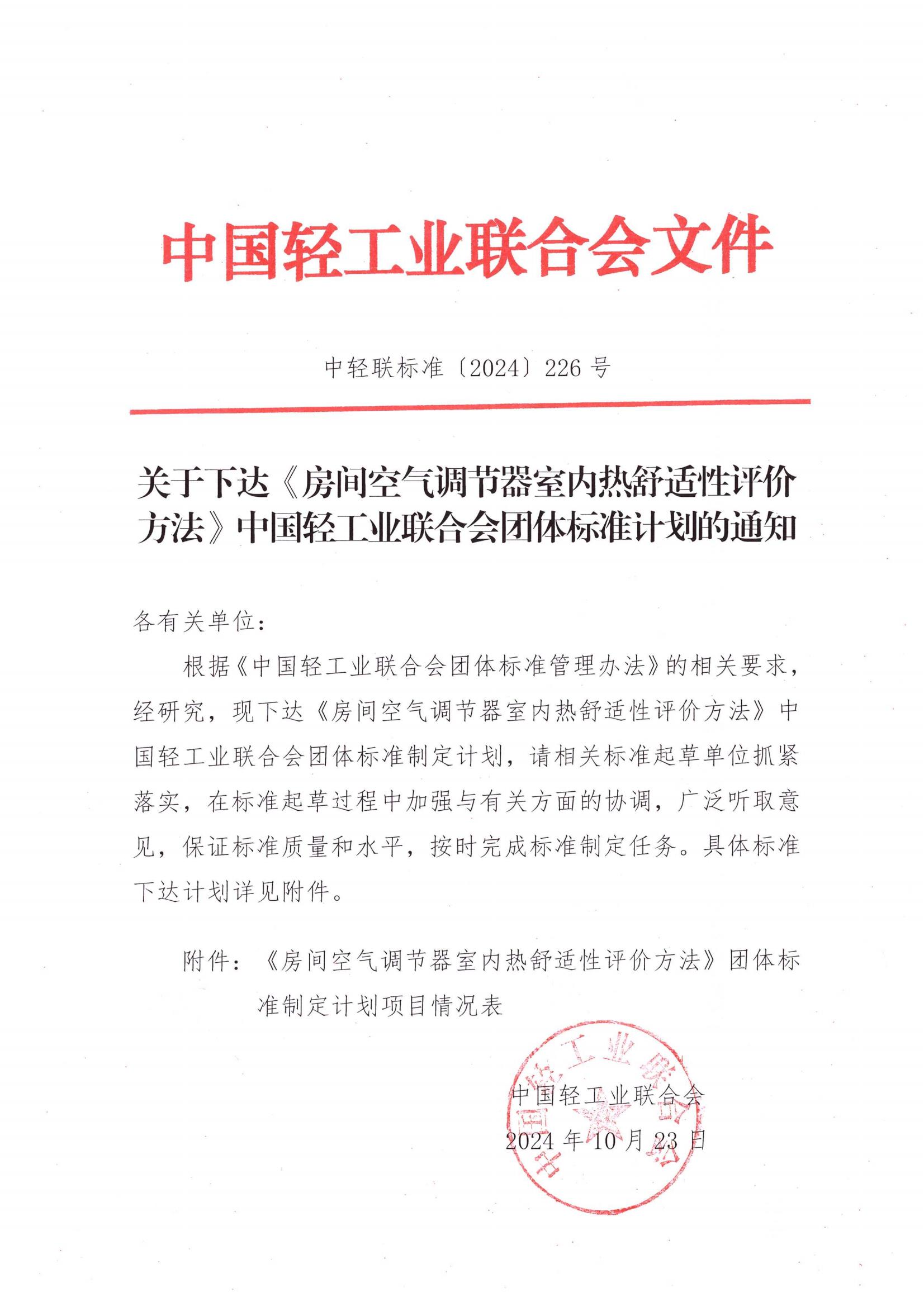关于下达《房间空气调节器室内热舒适性评价方法》优米app下载直播团体标准计划的通知
