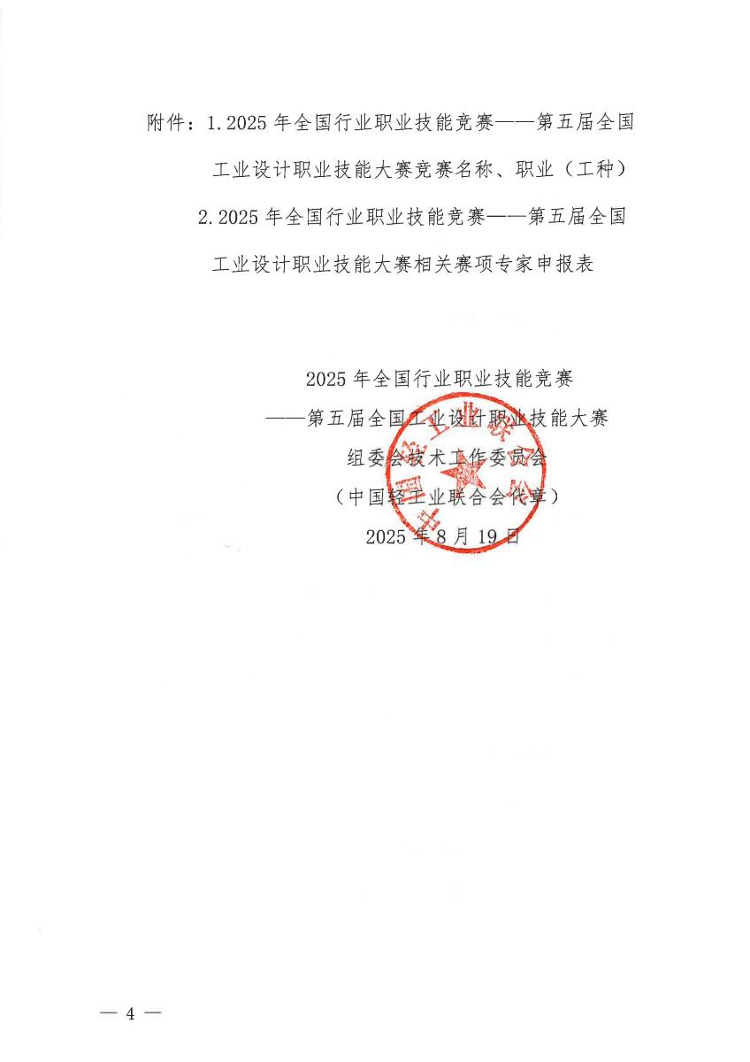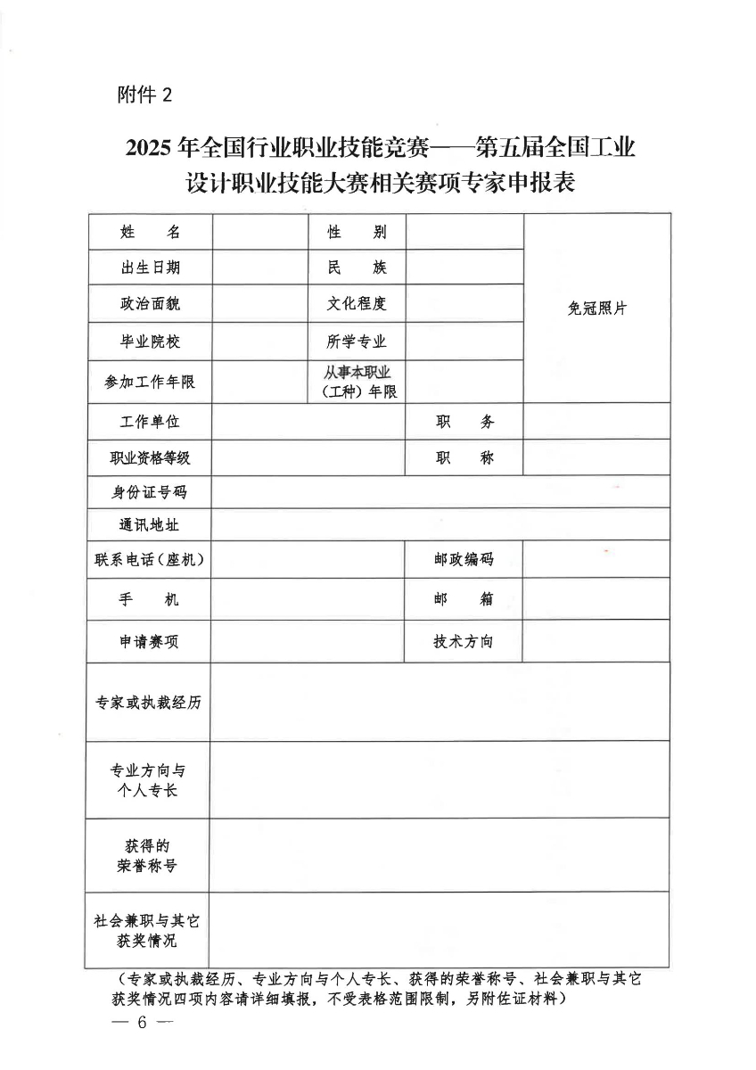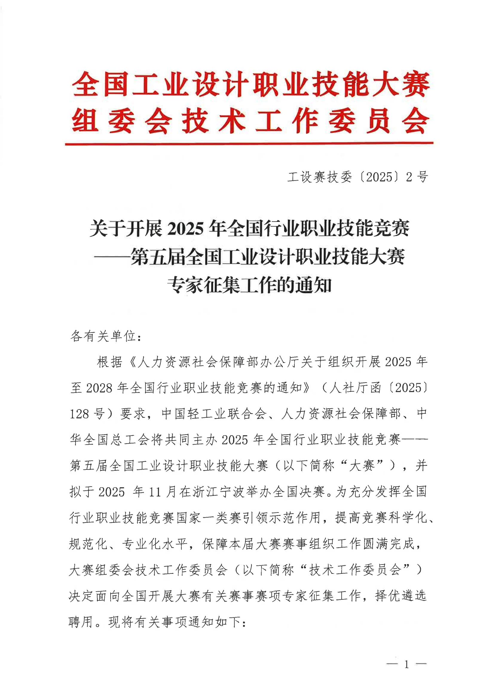 关于开展2025年全国行业职业技能竞赛第五届全国工业设计职业技能大赛专家征集工作的通知